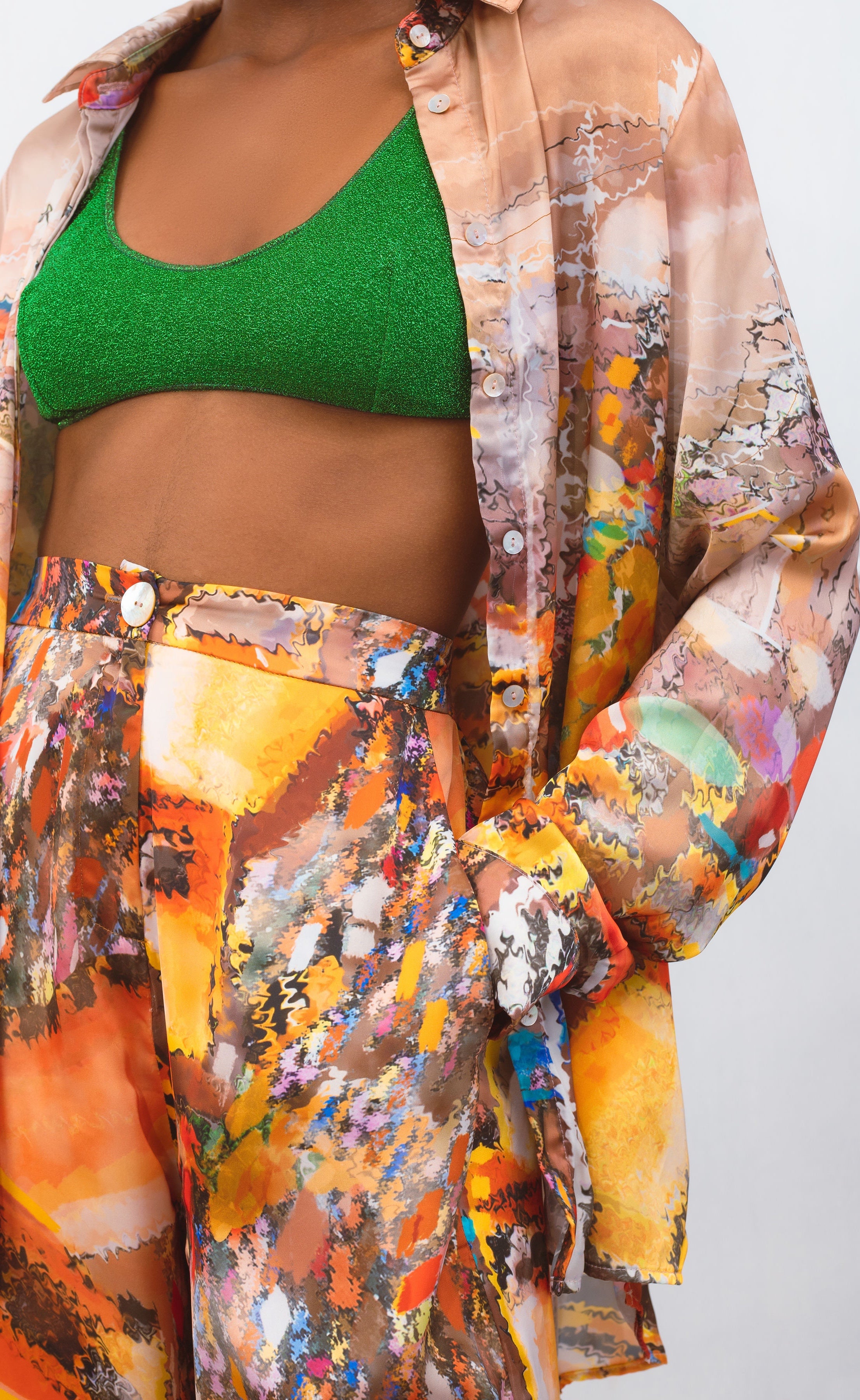 Designed for movement and ease, the We Move pants blend tailoring with relaxed fluidity. Featuring a high-waisted silhouette and an elasticated back waistband, they adapt comfortably to your shape. The wide-leg cut creates effortless motion, making them a staple for both casual and polished styling.
